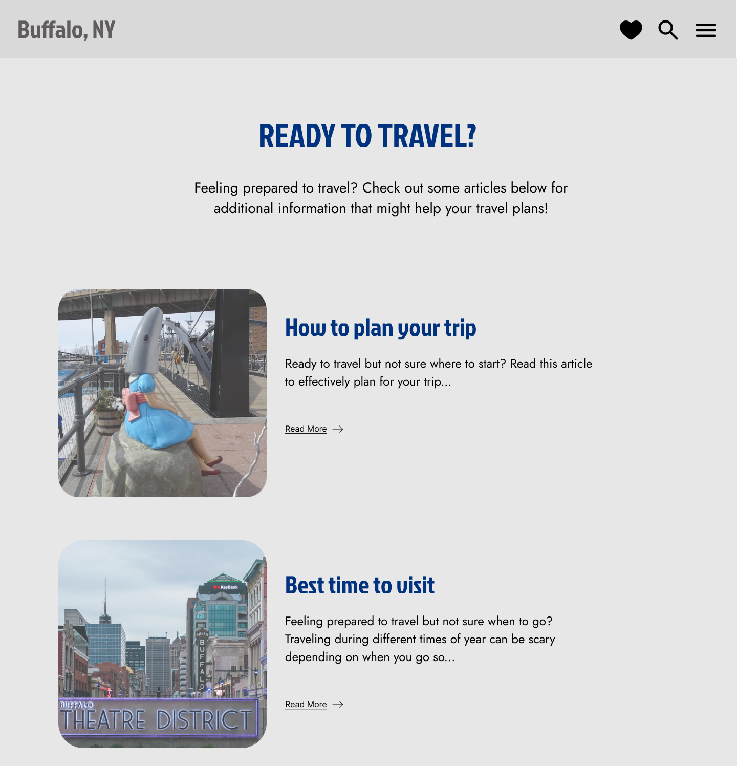 We were asked to design a website based on our hometown. I decided to create a tourist website encouraging people to visit Buffalo, NY.